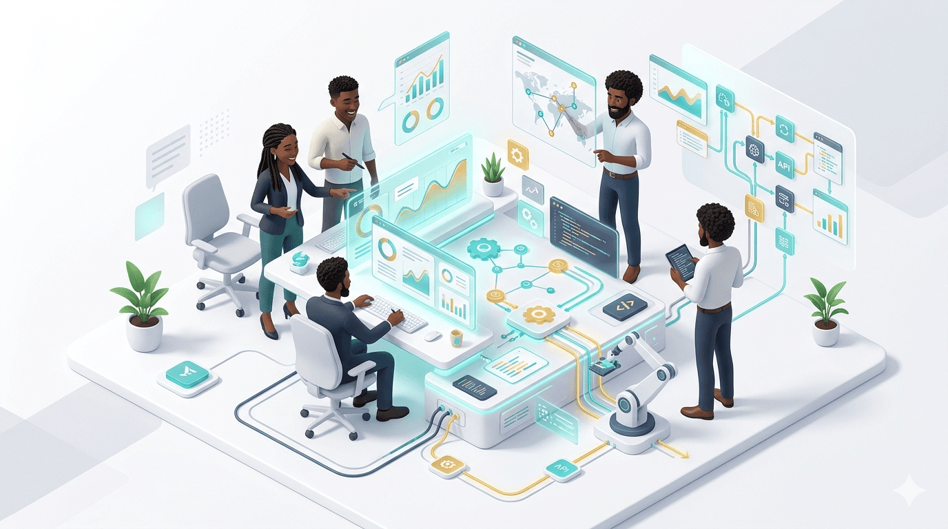 Simple language, no dev background needed. We start from problems you bring, use the right tools to move fast, and build real outcomes you can show—not buzzwords.